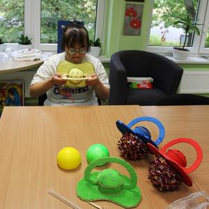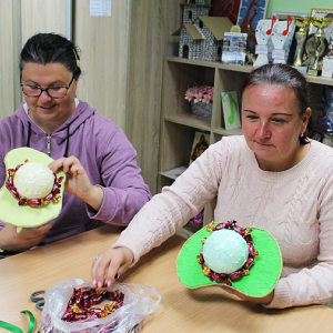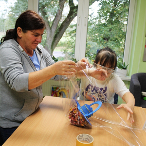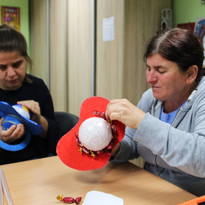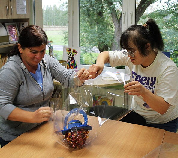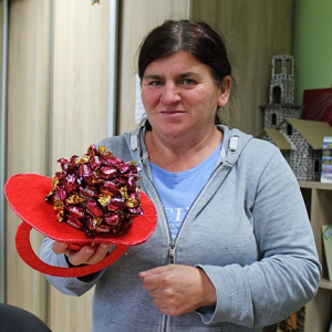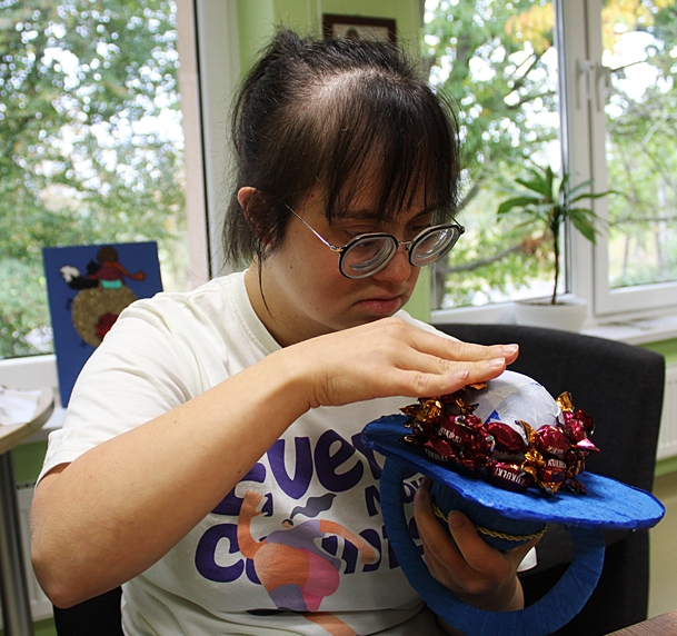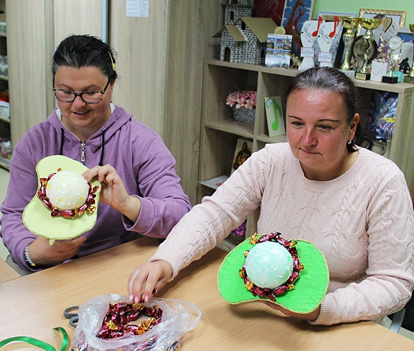 Kilka dni wcześniej , w wielkiej tajemnicy, własnoręcznie zrobiły kolorowe smoczki oklejone cukierkami, które następnie zostały wręczone Panom - Uczestnikom ŚDS.