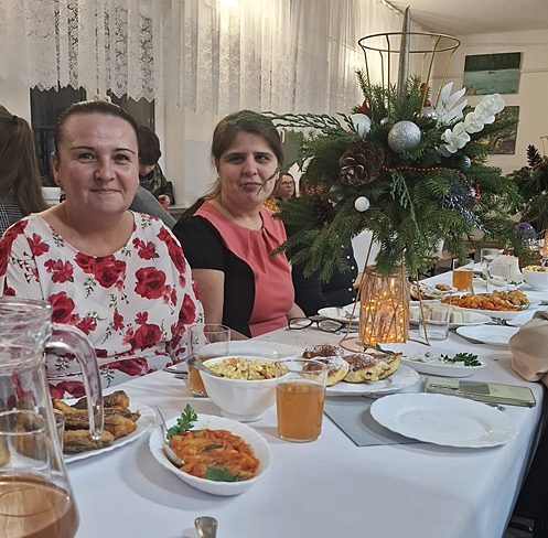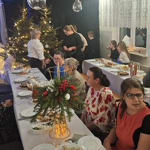W trakcie spotkania nie zabrakło również wspólnej wieczerzy. Uczestnicy mieli okazję skosztować tradycyjnych potraw wigilijnych oraz pysznych ciast przygotowanych przez Koła Gospodyń Wiejskich.