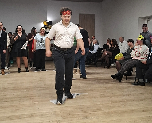 W trakcie balu nie zabrakło również konkursów z nagrodami, które dostarczyły wielu emocji, śmiechu i zdrowej rywalizacji. Dużym powodzeniem cieszył się także poczęstunek, na który składały się pyszne potrawy oraz słodkie przysmaki przygotowane z zaangażowaniem przez podopiecznych, ich rodziców oraz pracowników ŚDS w Laskach.