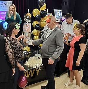 Oprawę muzyczną , jak co roku, zapewniła solistka Pani Monika Głowacka, której występ porwał uczestników do tańca. Przy dźwiękach znanych i lubianych utworów parkiet szybko się zapełnił, a uśmiechy i energia uczestników były najlepszym dowodem na to, jak bardzo wszyscy czekali na to wydarzenie. Muzyka sprzyjała integracji i sprawiła, że nogi same rwały się do tańca.