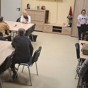 Podczas spotkania Pani Krystyna omówiła z uczestnikami podstawowe zasady prawidłowego mycia rąk, podkreślając ich znaczenie w zapobieganiu chorobom. Zwróciła również uwagę na konieczność odpowiedniego doboru odzieży do warunków pogodowych oraz pory roku, co ma istotny wpływ na zachowanie zdrowia i dobrego samopoczucia.