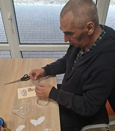 Podczas zajęć uczestnicy mieli okazję rozwijać swoją kreatywność i zdolności manualne, wykonując własnoręcznie karki wielkanocne. Przy wsparciu pracowników podopieczni stworzyli piękne prace, które będą mogli przekazać swoim bliskim.